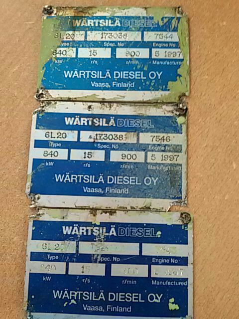 Type : 6L20 Spec. No : 173038 Engine No : 7546 / 7545 / 7544
