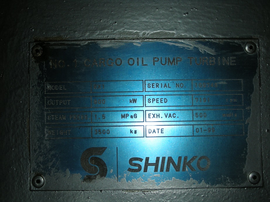 Other Details: CARGO OIL PUMP TURBINE