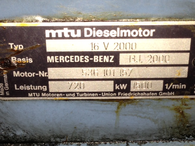FOR SALE Generator MTU 16V2000 910 KVA