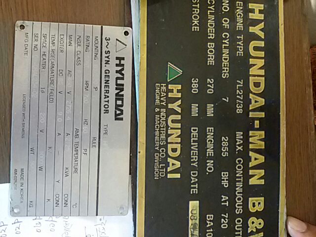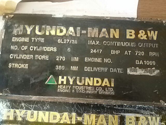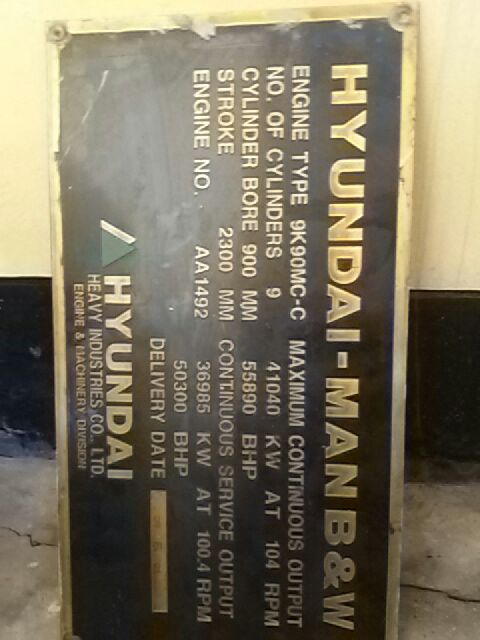 FOR SALE:HYUNDAI MAN B&W 9K90MC-C,6L 27/38,7L 27/38 COMPLETE ENGINE AND SPARE.