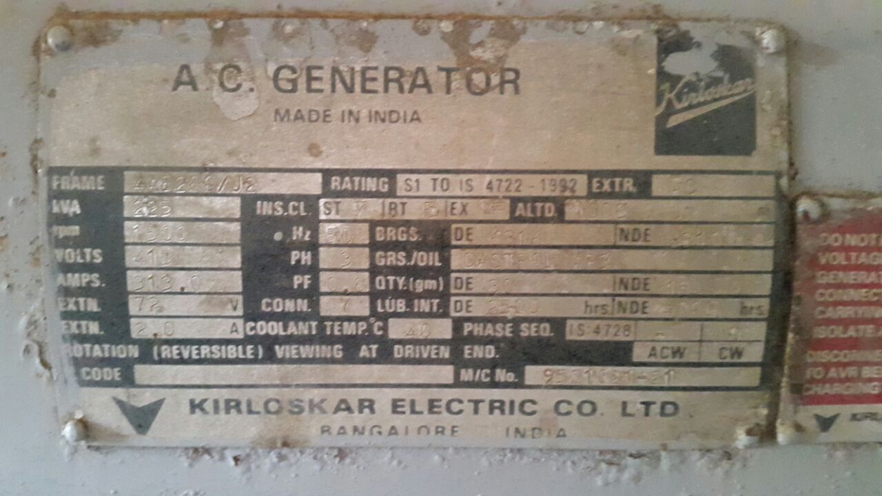 WE HAVE KILOSKAR 225 KVA D.G. SET FOR SALE.